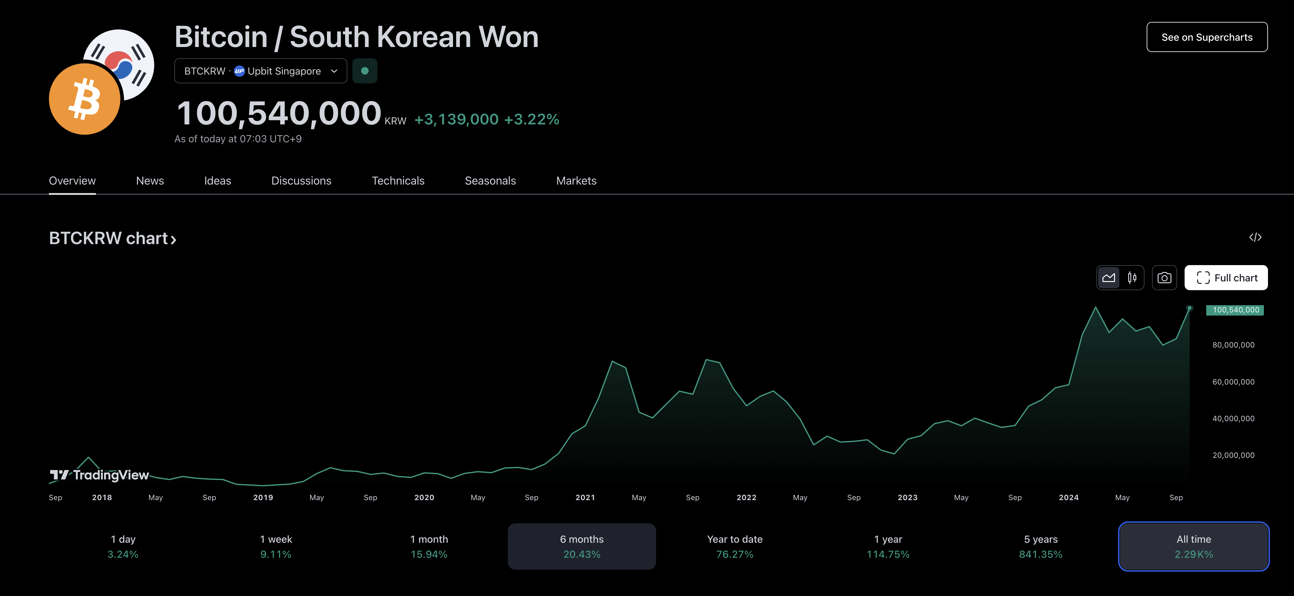 국내 최대 가상자산 거래소 업비트에서는 30일 오전 9시 15분 현재 약 1억95만원에 거래되고 있다. 비트코인 가격은 4월 11일 종가 기준 1억 원(1억541만원)을 넘어섰다. 원) 6개월이 지났습니다. 역대 최고가는 3월 14일 1억500만원이다. 이는 미국 대선이 다가올수록 새 정부가 가상자산에 더욱 우호적인 정책 기조를 취할 것이라는 기대 때문으로 풀이된다.