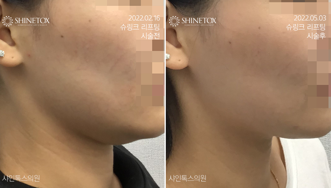 예전에 관리 열심히 받으러 다니기 전 사진보면지금이랑 진짜 얼굴 볼살부터가 차이가 많이 나죠?슈링크유니버스 받고 나서는 얼굴형 완전 용됐어요 ㅋㅋㅋㅋㅋㅋ요즘은 얼굴 작다는 소리 진짜 많이 들음,,,,,,,예전에는 솔직히 얼굴 작다는 소리 별로 못들어봤어요 주륵,,, 슈링크유니버스 후기 사진도 보여드릴게요,위 사진이 전, 아래 사진이 2주 후인데요확실히 라인이 좀 더 날렵하게 정돈된 느낌, 보이시죠?볼살이 뽈록하게 있는 부분이 정리된 것 같은 느낌! 45도 각도에서 봤을 때의 슈링크유니버스 후기 사진!위 사진이 전, 아래 사진이 2주 후고요,위 사진도 사실 날렵하다면 날렵하긴 한데아래 사진이 훠어얼씬 샤프하게 느껴지지 않나요?턱 끝 부분도 보시면 더 날렵하다는거 느껴지실 거예요!!! 반대쪽 45도 각도!워우 확실히 전체적으로 라인이 더 살아있는 느낌이에요이전에는 살짝 더 동글동글했다면 지금은 더 뾰족뾰족해진 느낌?제가 원하던 바로 그 느낌 ^*^ 히히히 마지막으로 전후사진 붙여서 한번 더 비교해보고 마무리 할게요!정말 꼼꼼하게 얼굴형에 맞춰서 세심하게 시술해주시고통증은 덜한데 효과는 더더욱 좋아진 것 같은 느낌이라서슈링크유니버스 정말 만족스러웠어요얼굴 살 때문에 턱라인이 둔해져서 고민이신 분들이나쳐진 라인이 고민이신 분들은고민하지 마시고 슈링크유니버스 받아보시면 좋을 것 같아요!일단 덜 아팠다는 점이 너무너무 좋았음 ㅋㅋㅋㅋㅋ 그럼 오늘 리뷰는 여기서 마무리하겠습니다! 다음에 또 도움되는 후기로 찾아오도록 할게요