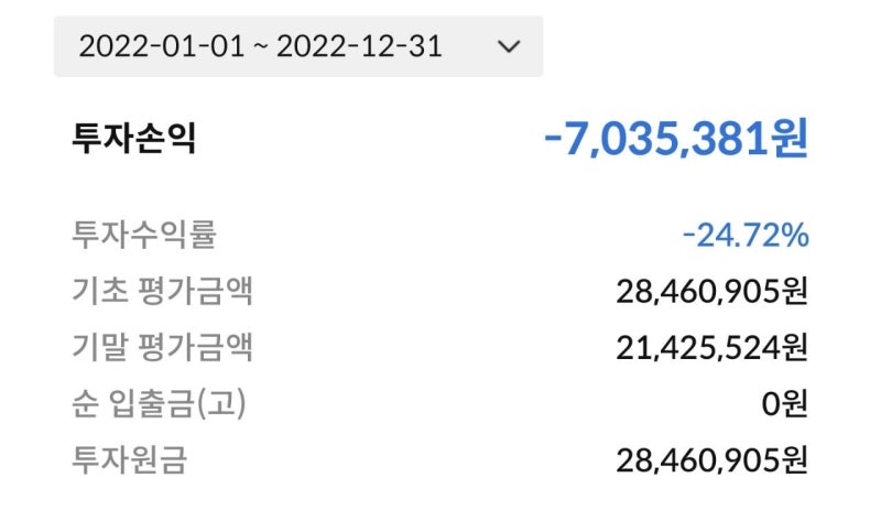 수동적으로 관리되는 계좌이기 때문에 2022년에는 급격한 하락세를 겪었습니다.