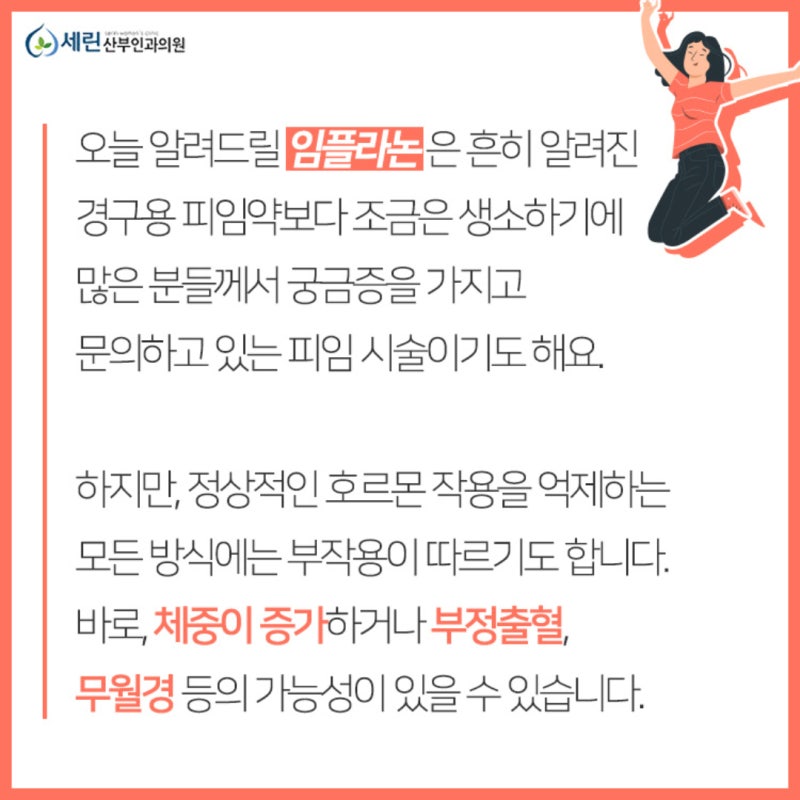 피임은 건강한 성생활을 영위하기 위해 남녀 모두에게 필수적으로 요구됩니다. 피임에는 정말 다양한 종류들이 있습니다. 남성의 경우에는 가장 보편적으로 알려진 콘돔에서부터 수술적 방법들이 있으며 여성의 경우 여성형 콘돔, 자궁내장치, 경구피임약 등이 있습니다. 과거에는 약을 복용한다는 것에 대한 인식이 좋지 않아 경구피임약을 꺼리는 사례들이 많았으나 오늘날 피임의 목적 외에도 여성질환이나 생리주기 관리 등의 다양한 이유로 복용률이 늘어나고 있다고 하죠. 처방없이 약국에서도 구매 가능한 제품들이 있으며 복용으로 관리가 가능하기 때문에 편의성이 높다는 장점이 있지만, 효과를 얻기 위해선 매일 잊지말고 복용을 해야합니다. 최근에는 경구피임약 외에도 피부 삽입형 피임기구인 임플라논에 대한 관심도 높습니다.
