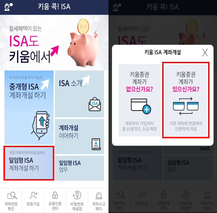 연초에 만들려고 했는데 미루고 미루다가 이제야 서두르게 되네요. 5분 안에 만들 수 있어요! 먼저 (키움증권 앱) – (돋보기) – (ISA) 검색 ISA 소개 화면이 나옵니다.